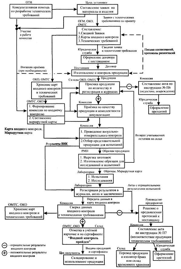 1.13 Варианты организации указанных подразделений, их административная подчиненность, и исполняемые функции на конкретном предприятии могут быть различны. Поэтому текст Типового положения имеет лишь форму примера, на основе которого предприятие может разрабатывать собственную схему реализации входного контроля в виде инструкции или стандарта предприятия. Такой документ должен быть обязательным для всех структурных подразделений, производств и цехов предприятия, участвующих в процессе приобретения и комплектации материалов, изделий и оборудования, в проведении входного контроля, оформлении его результатов, выдачи материалов и оборудования требуемого качества в работу и вплоть до стадии приемки работ. Функции службы входного контроля, выполняемые отдельными подразделениями предприятия, должны быть закреплены приказом по предприятию.