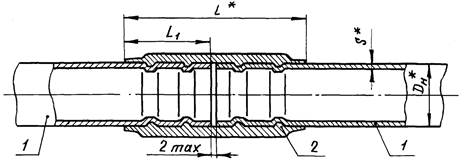 1 - трубопровод; 2 - муфта ТМС по ОСТ 1 13681-80