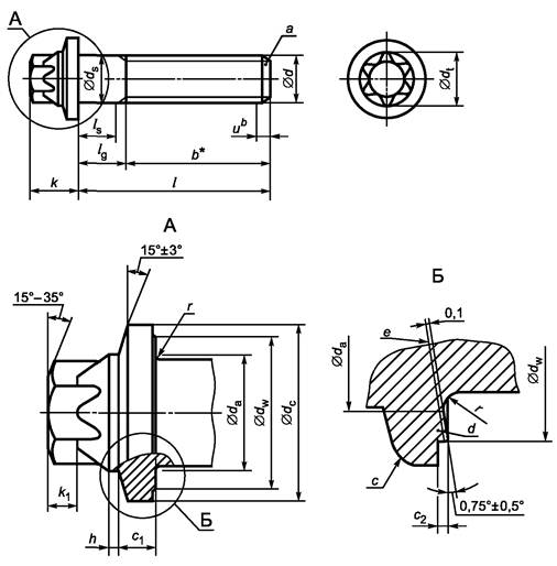 Настоящий стандарт устанавливает размеры, механические характеристики болтов со звездообразной головкой и большим фланцем (далее - болты), номинальным диаметром резьбы от 4 до 20 мм, крупным и мелким шагом, из стали с классами прочности 8.8 и 10.9 для болтов классов точности А и В.