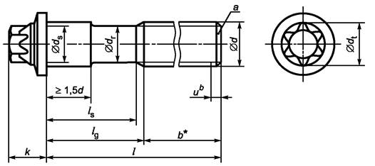 Рисунок 2 - Болт с уменьшенным цилиндрическим стержнем или с резьбой до головки. Форма В