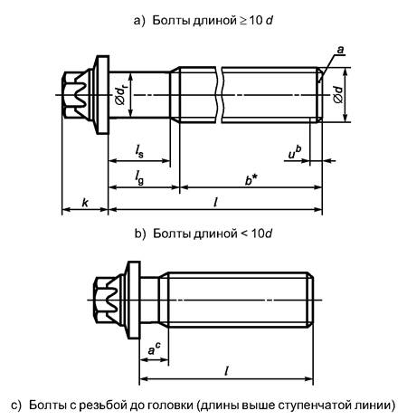 Болты длиной ³ 10d должны иметь полный цилиндрический подголовок.