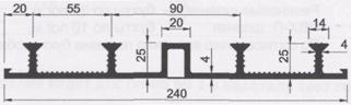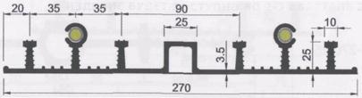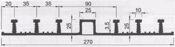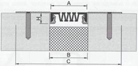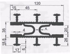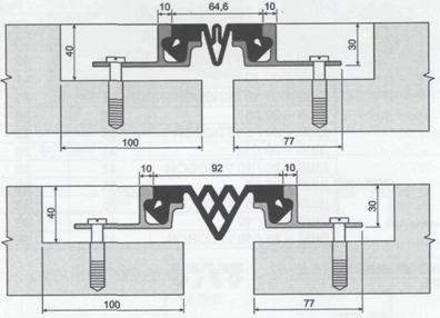 Конструктивно деформационный шов состоит из алюминиевых направляющих, в которые вставлен уплотнительный профиль. Швы не требуют проведения профилактических работ и устойчивы к старению. Уплотнительный профиль изготовлен из плотной термо-, свето-, озоно-, морозостойкой резины на основе этиленпропиленового каучука (EPDM) или термоэлостопласта (ТЭП) и устойчив к воздействию озона, ультрафиолета, маслам, бензину и антиобледенительным солям. При выходе из строя может быть легко заменен. |