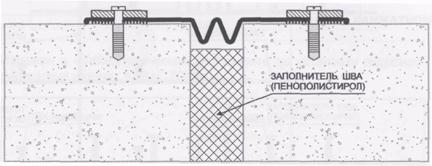 Конструктивно деформационный шов состоит из алюминиевых направляющих, в которые плотно вставлен уплотнительный профиль. Конструкция шва препятствует попаданию внутрь шва грязи и обеспечивает водонепроницаемость и устойчивость к износу при тяжелых эксплуатационных условиях. Швы не требуют проведения профилактических работ и устойчивы к старению. |
