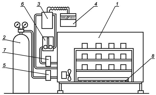 где С2 - концентрация углекислого газа в камере во время испытаний;