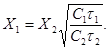 Время карбонизации τ1 защитного слоя толщиной X1 при концентрации углекислого газа в воздухе C1 рассчитывают по формуле