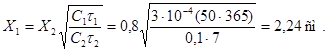 X2 - глубина карбонизации бетона за время испытаний.