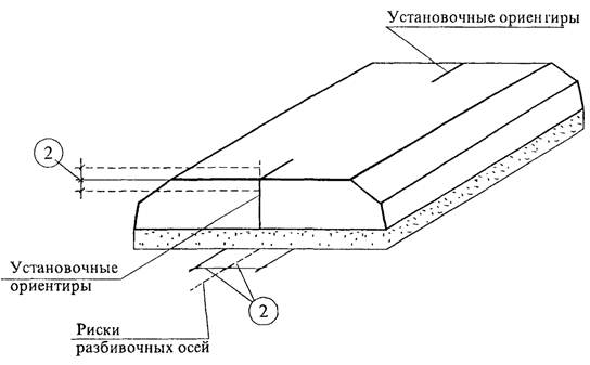 1. Отклонение от совмещения ориентиров (рисок геометрических осей, граней) в нижнем сечении вентблока с установочными ориентирами (рисками геометрических осей или гранями нижележащих элементов, рисками разбивочных осей) 8 мм.