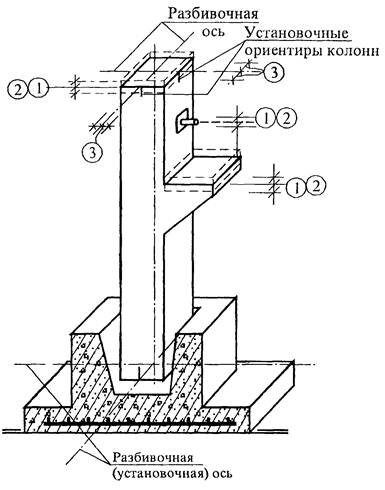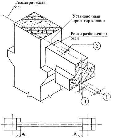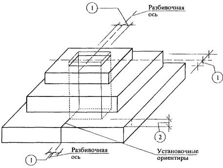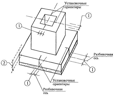1. Отклонение от совмещения установочных ориентиров фундаментов стаканного типа с рисками разбивочных осей 12 мм.