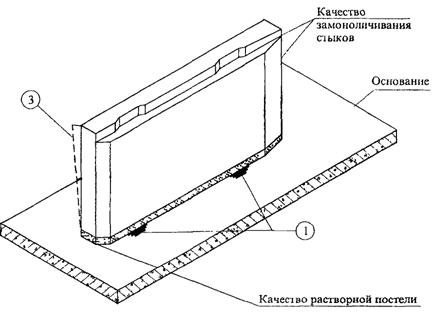 Соответствие площади опирания Положения плит в плане, плотность примыкания к опорной поверхности, правильность технологии монтажа |