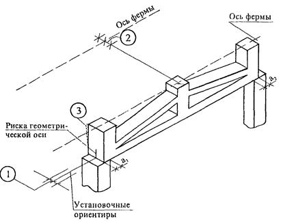 1. Отклонение от совмещения ориентиров (рисок геометрических осей, граней) в нижнем сечении ферм (балок) с установочными ориентирами (рисками геометрических осей или гранями нижележащих элементов) 8 мм.