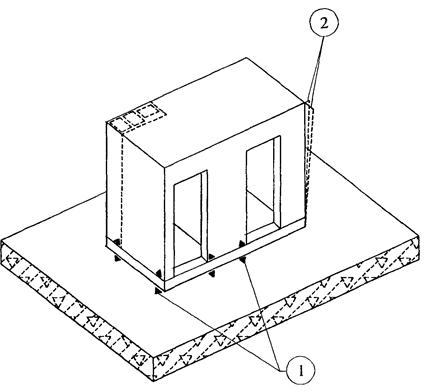 1. Отклонение от совмещения ориентиров (рисок геометрических осей, граней) в нижнем сечении санитарно-технической кабины с установочными ориентирами (рисками геометрических осей или гранями нижележащих элементов, рисками разбивочных осей) 8 мм.