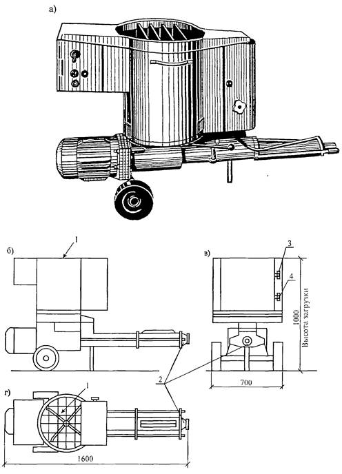 а) общий вид; б) вид спереди; в) вид сборку; г) вид сверху