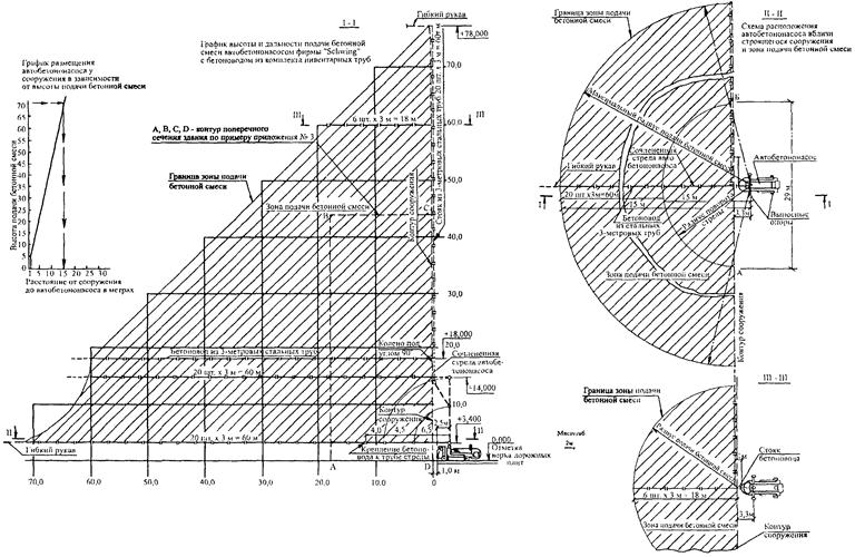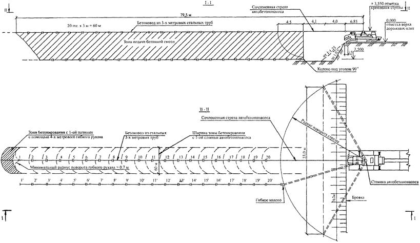 3 Стоянки автобетононасосов уточняются в ПНР с таким расчетом, чтобы охватить как можно большую зону подачи и распределения бетонной смеси при наименьшем количестве стоянок.