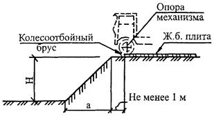 6 В таблице приведены значения величин заложения «а» при глубине заложения «Н», в метрах. Расстояние от опоры машины до бровки откоса не должно быть менее 1 м.