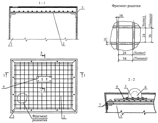 2 Размер ячеек сетки должен приниматься по указаниям на чертеже, а диаметр стержней должен быть не менее 16 мм.