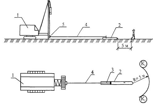 8.4.3 При подъеме стрелы копра, собранной в горизонтальном положении, разборке, передвижке и развороте копра, а также при установке свай должны быть прекращены все работы в радиусе, равном длине поднимаемой конструкции копра, сваи и т.д. плюс 5 м.
