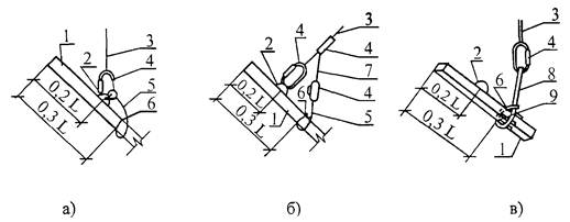 8.4.10 Сваи разрешается подтягивать по прямой линии в пределах видимости машиниста копра только через отводной блок, закрепляемый у основания копра. Запрещается подтягивать сваю через верхний блок копра на расстоянии более 10 м, а также сваю, расположенную сбоку от продольной оси, а при выведении сваи в вертикальное положение строповка производится за кольцевой строп согласно рисунку 9.