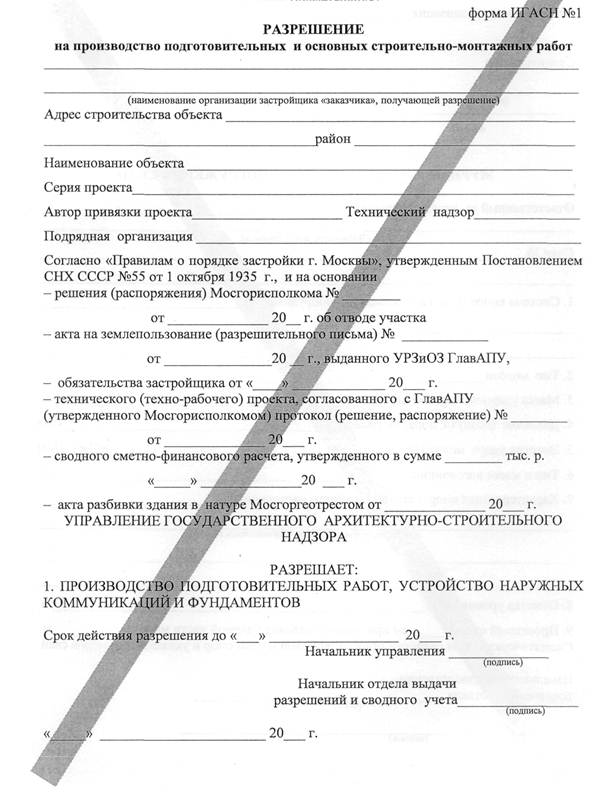 Разрешение на производство подготовительных и основных строительно-монтажных работ получает заказчик по форме ИГАСН (приложение А).