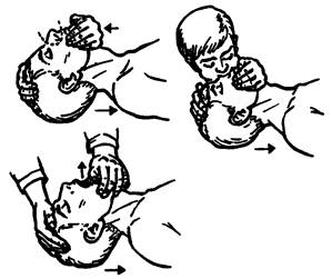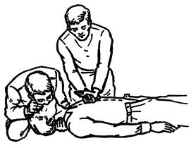 Даже при отсутствии у пострадавшего признаков жизни необходимо немедленно принимать меры по оживлению: восстановить проходимость дыхательных путей (для чего открыть рот и очистить его полость от слизи, крови и инородных тел), при отсутствии дыхания - провести искусственное дыхание; при отсутствии сердцебиения и пульса - наружный массаж сердца.