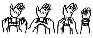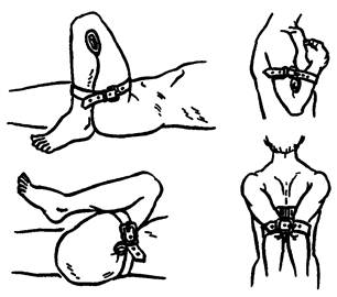 Прижатие кровоточащего сосуда фиксацией конечностей в положении максимального сгибания
