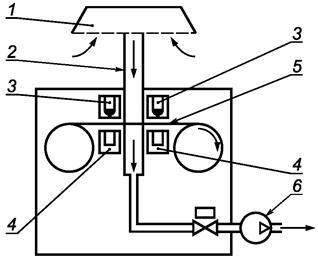 бета-излучения; 5 - фильтрующая лента; 6 - насос