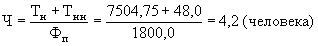 Тн - трудоемкость работ, рассчитанная по приведенным в сборнике нормам времени с применением коэффициента К = 1,1 (коэффициент, учитывающий затраты времени на организационно-техническое обслуживание рабочего места, отдых и личные потребности), = 7504,76 чел.-ч.