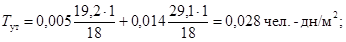 Tк = 0,0125(3,5 + 16,75)0,3 + 0,005 · 0,3 = 0,08 чел.-дн/м3.