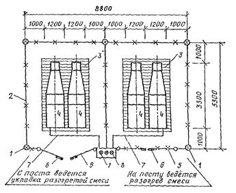ж) при применении электротермообработки бетона дополнительно указывается схема размещения и подключения электродов или электронагревателей, требуемые электрическая мощность, напряжение и сила тока, тип понижающего трансформатора, сечение и длина проводов;