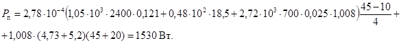 2. Мощность, необходимую для подъема температуры, определяем по формуле (45):