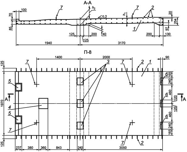 - сборные железобетонные плитные пролетные строения с односкатным водоотводом и гидроизоляцией на основе сталефибробетона длиной от 2,95 до 16,5 м под нагрузку класса С-14 для строительства и реконструкции мостов и путепроводов на железных дорогах нормальной колеи в обычном и Северном исполнении сейсмичностью 9 баллов.