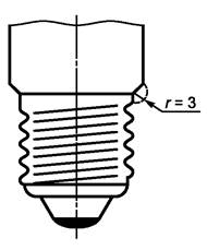 Острая часть кромки резьбы у входа калибра должна быть скруглена радиусом от 0,2 до 0,3 мм.