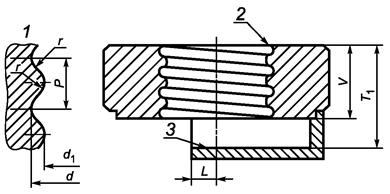 1 - деталь резьбы (правая резьба); 2 - острая часть кромки резьбы; 3 - поверхность X