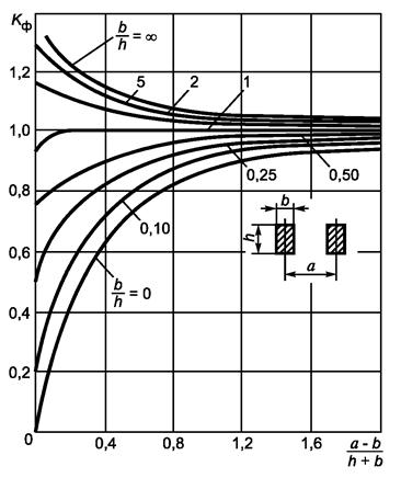 Для проводников прямоугольного сечения коэффициент формы следует определять по кривым, приведенным на рисунке 1.