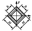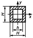 Трубчатые шины квадратного сечения выполнены из алюминиевого сплава АД31Т и расположены в одной плоскости. Ширина шины H = 125 мм, ширина окна шины h = 109 мм, погонная масса т = 8,96 кг/м. Длина пролета l = 5 м, расстояние между фазами а = 1 м. Допустимое напряжение в материале шины sдоп = 89 МПа, модуль упругости Е = 7×1010 Па. Изоляторы типа ИОС-110-600 (рисунок 3в) имеют Fразр = 6 кН, высоту Низ = 1100 мм, расстояние от центра головки до центра масс шины 80 мм, высоту арматуры нижнего фланца 100 мм, следовательно для них значения Н и h согласно рисунку 3в равны: h = 1100 - 100 = 1000 мм; Н = 1100 - 100 + 80 = 1080 мм. Жесткость изолятора Соп = 1100 кН/м, а частота собственных колебаний fоп = 28 Гц.