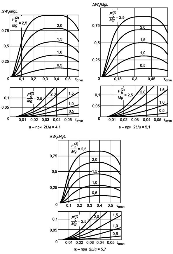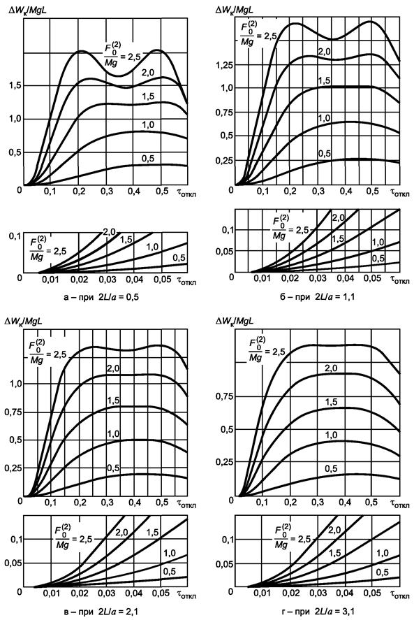 Примечание - Мг - масса гирлянд (суммарная масса двух натяжных гирлянд у двух опор проводников в пролете или масса одной гирлянды, если на опорах гирлянды подвесные); М - масса проводника в пролете; fг - провес гирлянд; f - стрела провеса проводника.