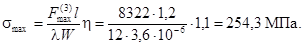 при этом максимальное напряжение в материале шин, определяемое по формуле (18), равно