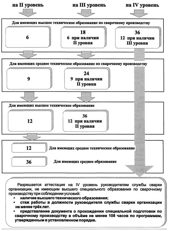 2.3. Объемы теоретических знаний и практических навыков аттестуемого специалиста сварочного производства должны удовлетворять требованиям экзаменационных программ в соответствии с п. 3.2. «Правил аттестации сварщиков и специалистов сварочного производства» ПБ-03-273-99, утвержденных постановлением Госгортехнадзора России от 30.10.98 г. № 63 и зарегистрированных в Министерстве юстиции России 04.03.99 г., регистрационный № 1721.