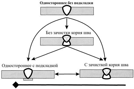 Комментарий: Область распространения аттестации при сварке КСС с односторонним швом на подкладке следует определять по таблице 8, т.е. распространять ее на сварные соединения, выполненные двусторонней сваркой с зачисткой корня шва. |