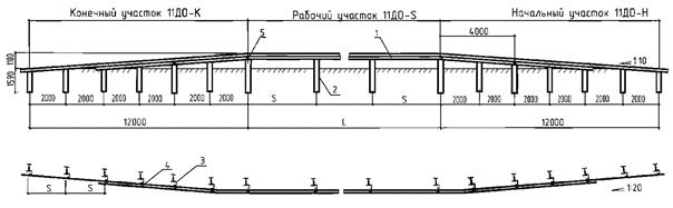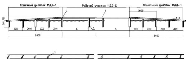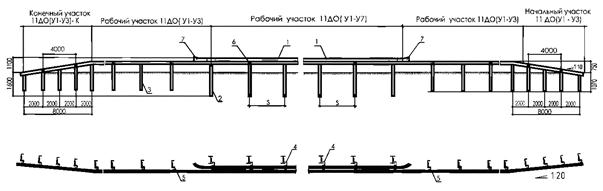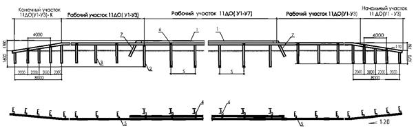 Рисунок Б.36 Сопряжение мостовой группы 11МО (У4-У10) с дорожной группой 11ДО (У1-У3)