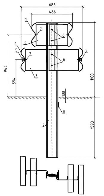 2 - Стойка мостовая: СМ-0,95Д14 для У4-У7; СМ-0,86Д16; СМ-1,26Д16 для У8-У10;
