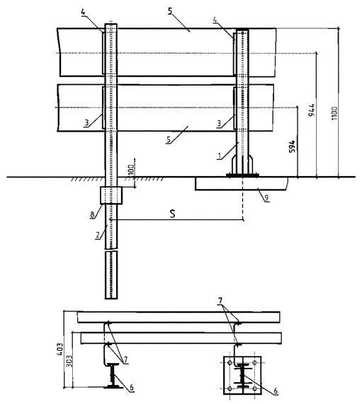 - тип ограждения - обозначен цифрой 1 (балка опирается на стойки).
