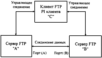 DTP (data transfer process) - процесс передачи данных. Устанавливает и управляет соединением данных. Может быть активным и пассивным.