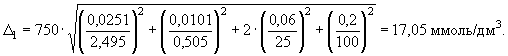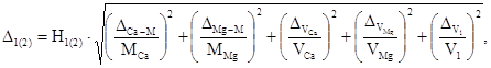 Расчет погрешности установления величины жесткости в аттестованных смесях D1 и D2, ммоль/дм3, проводят по формуле