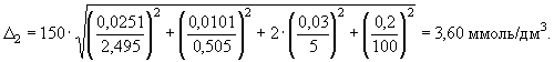 Показатель точности (границы погрешности при вероятности Р = 0,95) ± D, ммоль/дм3 |