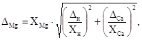 Расчет предела возможных значений погрешности установления массовой концентрации кальция DСа, мг/см3, и молярной концентрации КВЭ кальция DСа-М, ммоль/см3, проводят по формулам