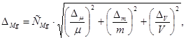 Расчет предела возможных значений погрешности установления массовой концентрации магния DMg, мг/см3, и молярной концентрации КВЭ магния DMg-M, ммоль/см3, проводят по формулам