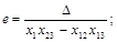 a = x1 - x12; b = x2 - x12; c = x3 - x13; d = x12 - x13; е = х13 при х13 = х23 |