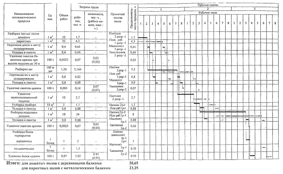 1.3 В разборку перекрытия входит: разборка чистых полов и лаг, удаление теплозвукоизоляционной засыпки, разборка подбора, разборка дощатой подшивки потолка.