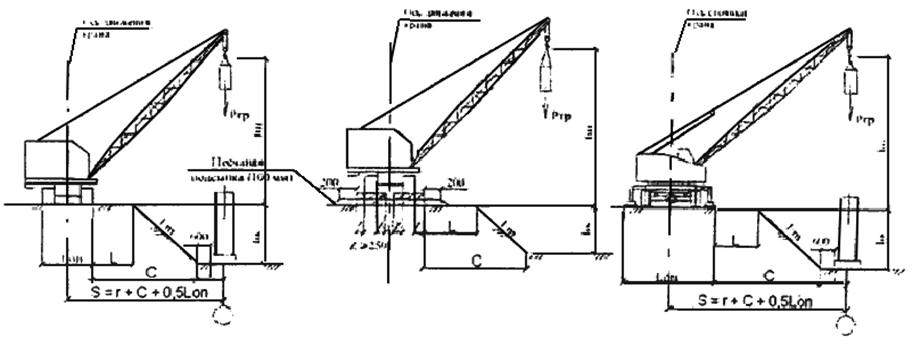 - условия установки и работы кранов-манипуляторов вблизи откосов котлованов (канав);