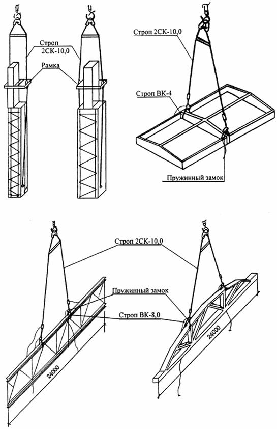 - перечень применяемых грузозахватных приспособлений и графическое изображение (схема) строповки грузов;